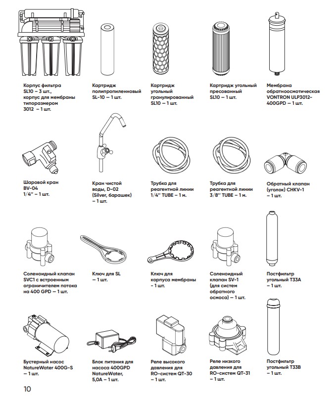 Система NatureWater ROE2-400 представляет собой оригинальное инженерное решение, которое сочетает компактный дизайн и невероятно высокую производительность. Это оборудование позволяет очищать до 1550 литров воды в сутки, что значительно превосходит показатели стандартных бытовых систем обратного осмоса.