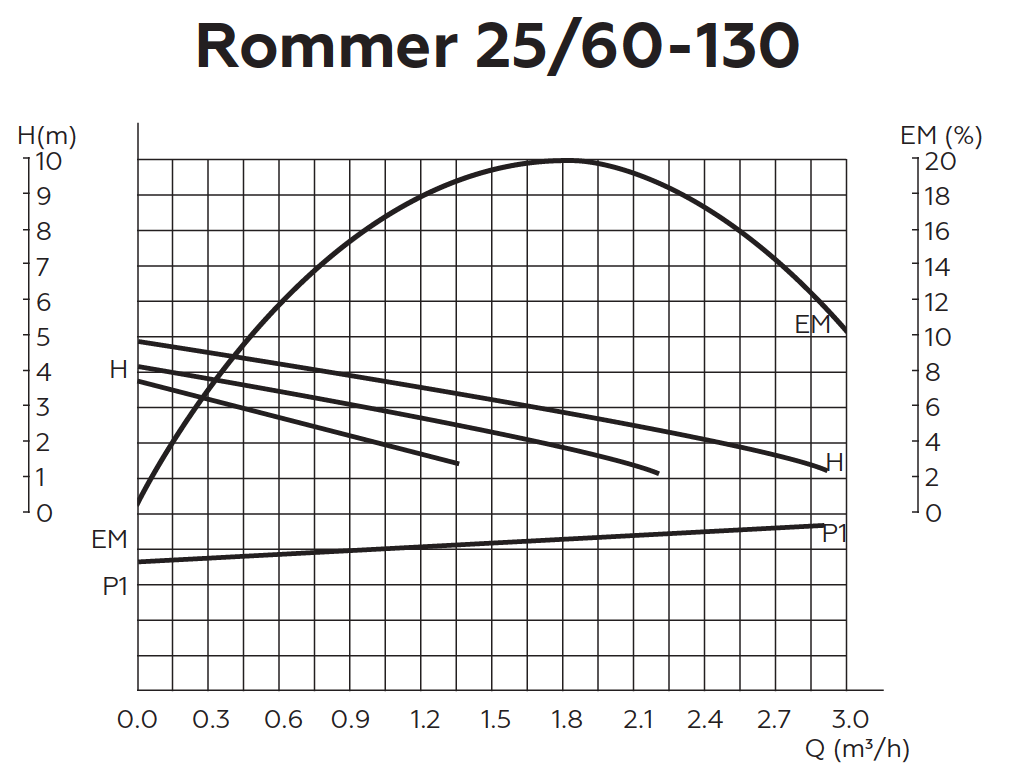 Трехскоростной циркуляционный насос ROMMER 25/60-130 с мокрым ротором, предназначен для циркуляции теплоносителя в бытовых и коммерческий системах отопления небольшой площади.